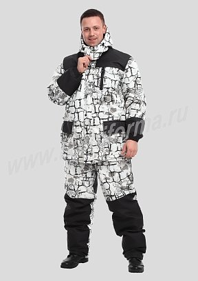 В зимнем камуфляже используется специализированный маскировочный узор, созданный для эффективного скрытия в снежной среде. Его палитра включает белые, серые и голубоватые оттенки, которые помогают размыть силуэт и слиться с ландшафтом.