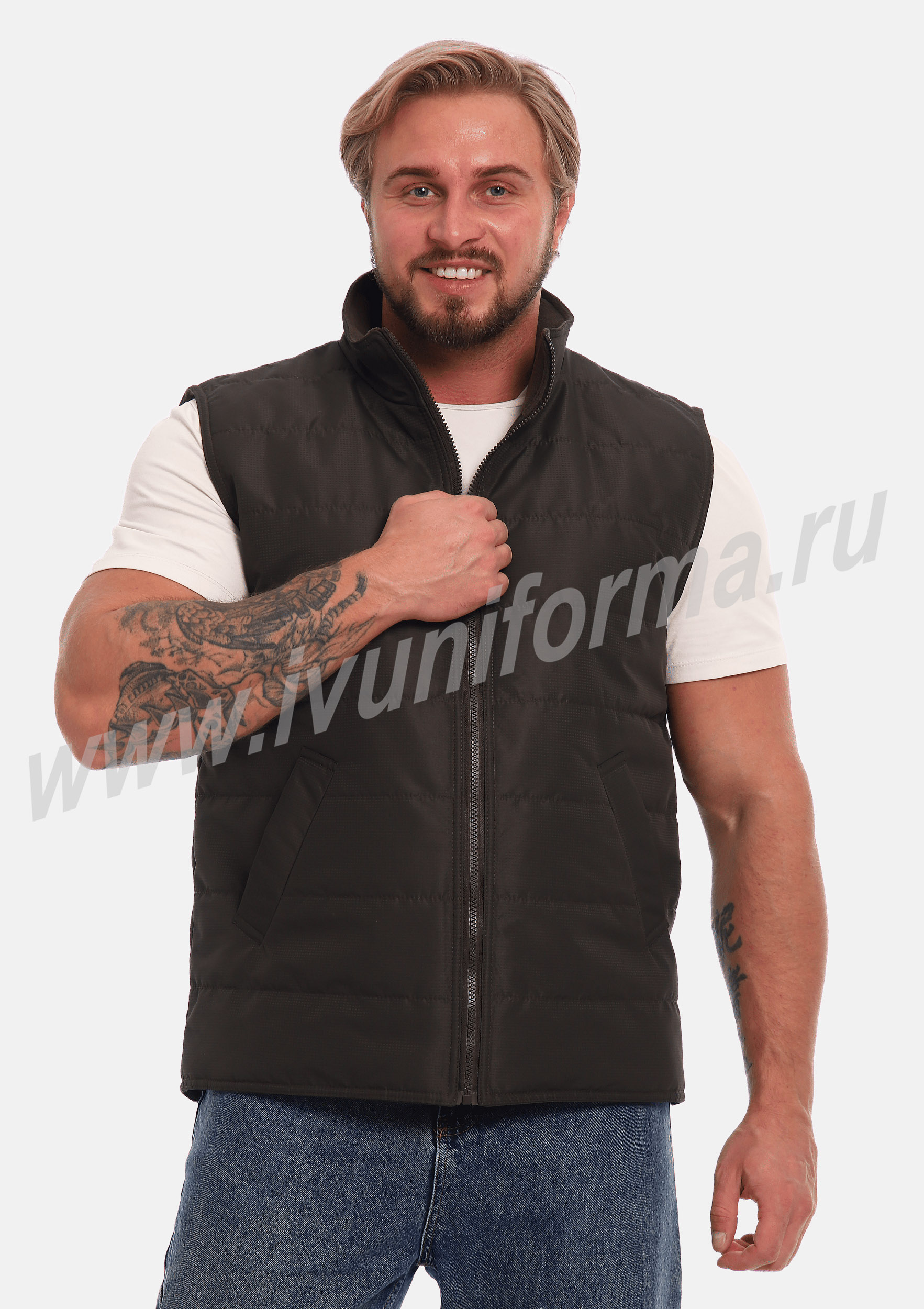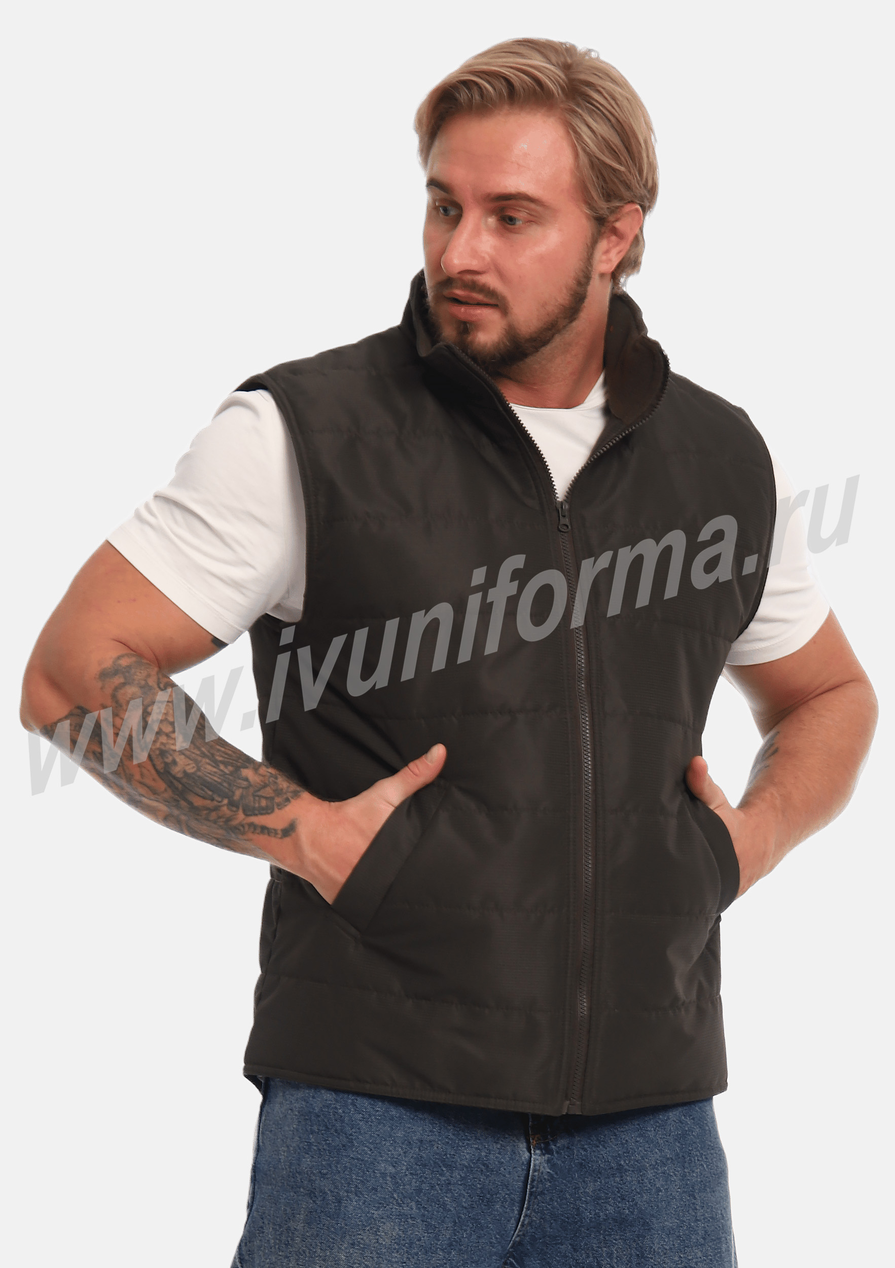 Улучшенный утепленный жилет на молнии с двумя боковыми карманами в нижней части и одним потайным карманом на молнии. Частая стёжка изделия обеспечивает надёжную фиксацию утеплителя, предотвращая его скатывание после стирки. Ткань жилета весьма практична и проста в уходе, не намокает, не продувается, не выцветает на солнце, даже после многократных стирок остается в первоначальном виде. Жилет имеет воротник-стойку с внутренней флисовой отделкой. Жилет является универсальным для использования, как мужчинам, так и женщинам.